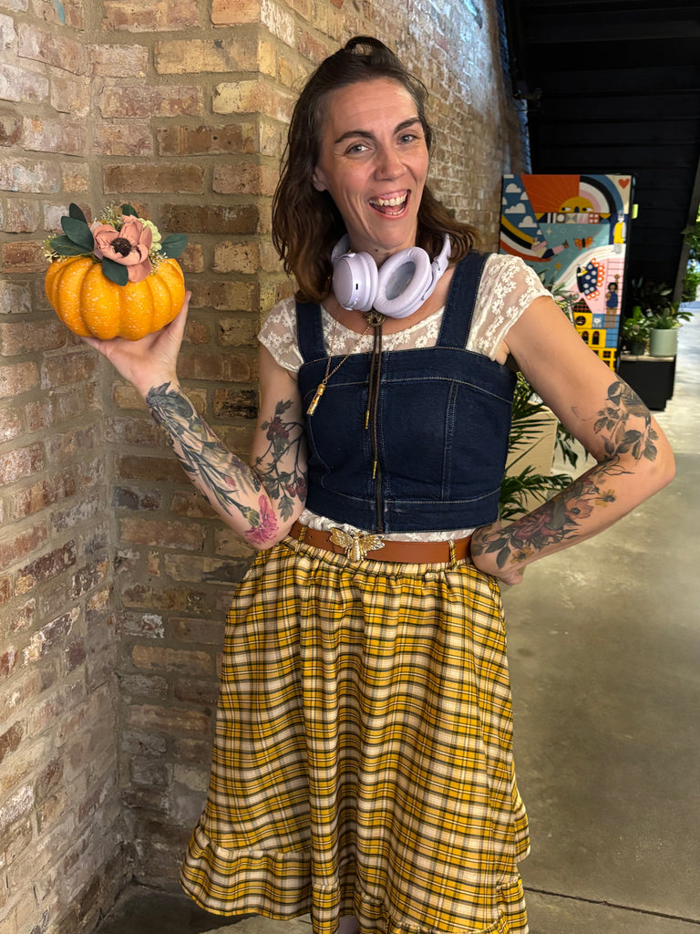 Using a beautiful faux pumpkin as your canvas, you'll design a stunning, boho-chic centerpiece that’s far from basic. We’ll provide all the supplies—the pumpkin, a rainbow of wood flowers, lush greenery, and elegant accents. You’ll learn basic floral composition as you create a one-of-a-kind fall treasure that will last for years to come.