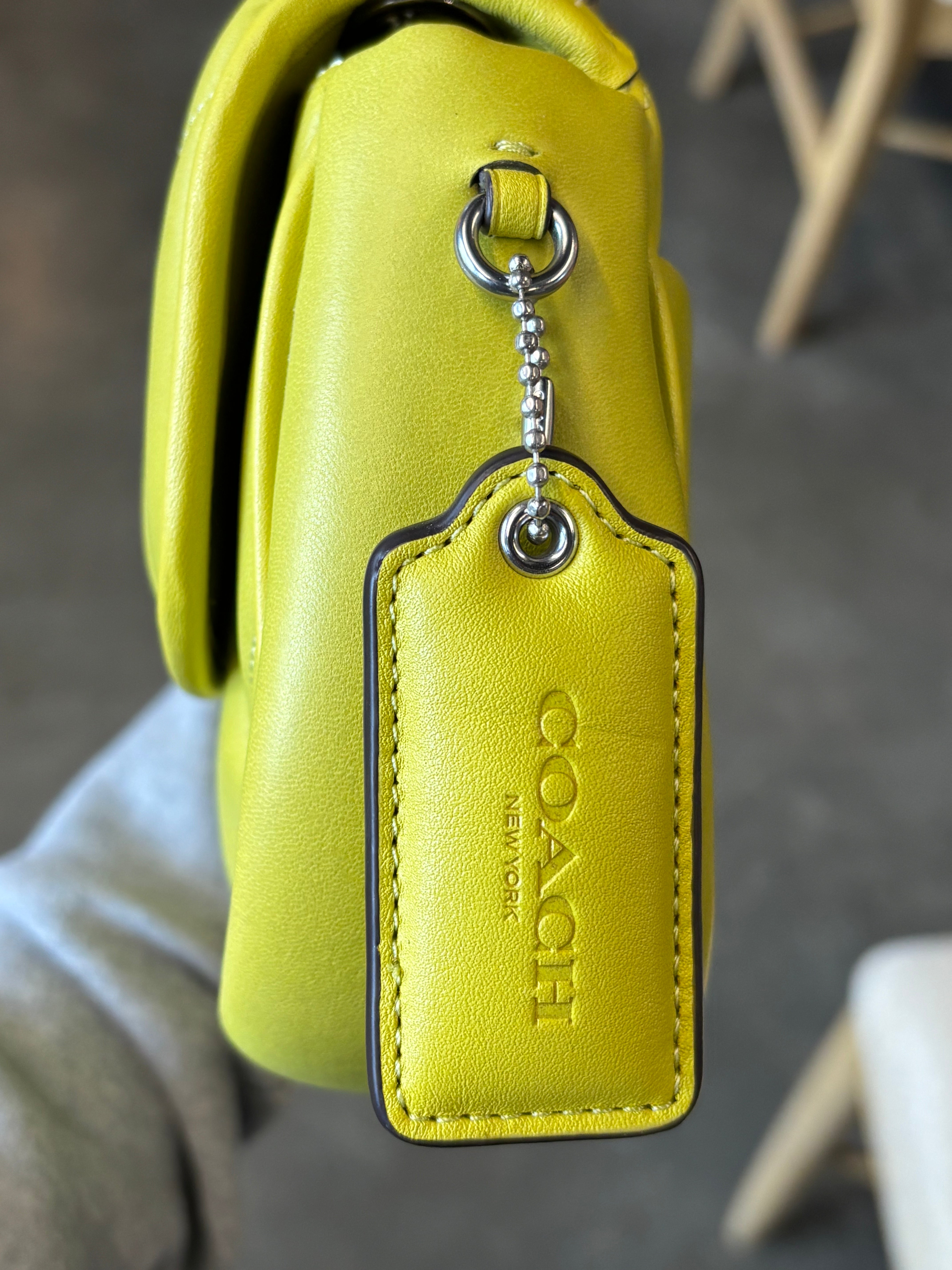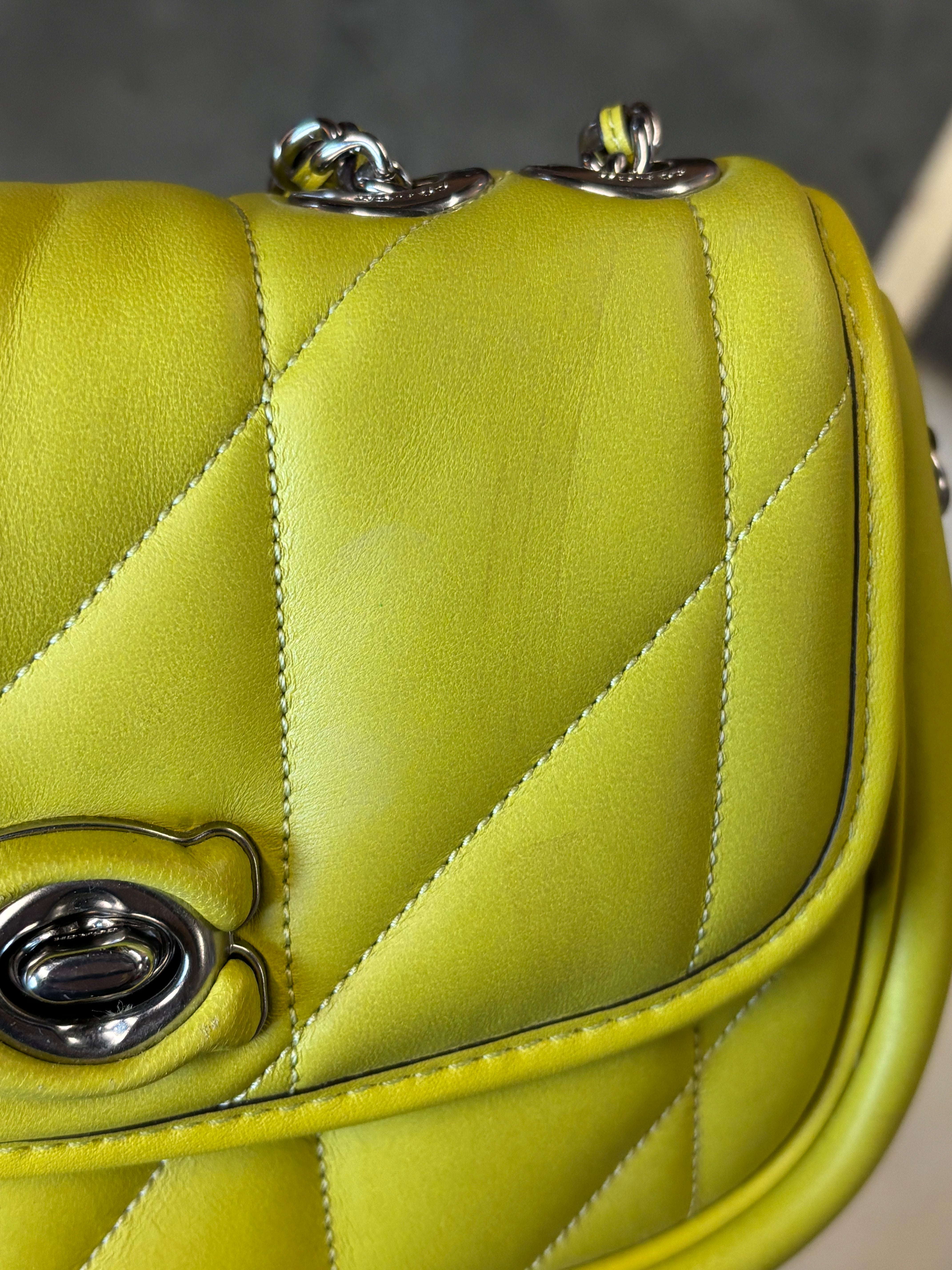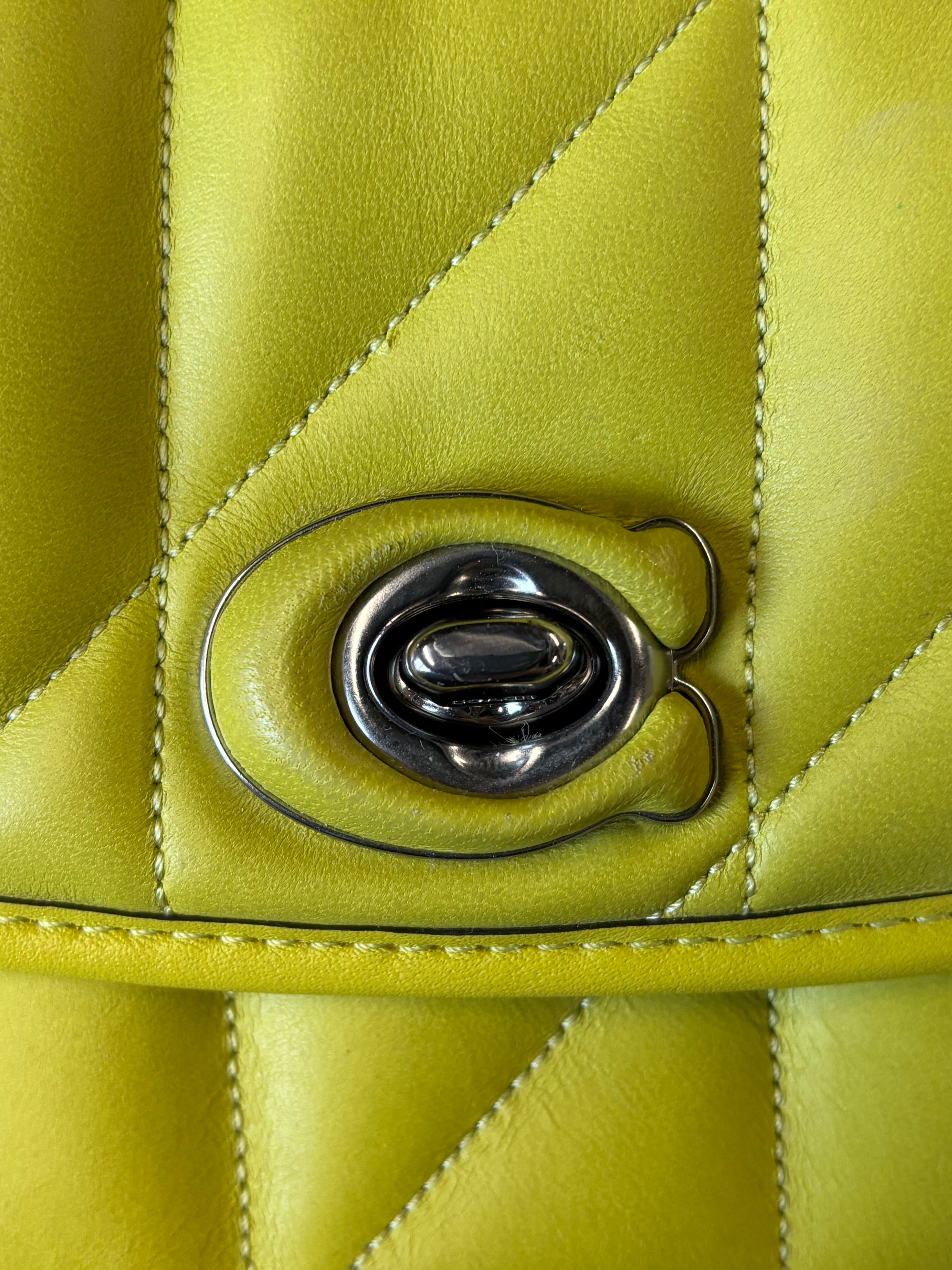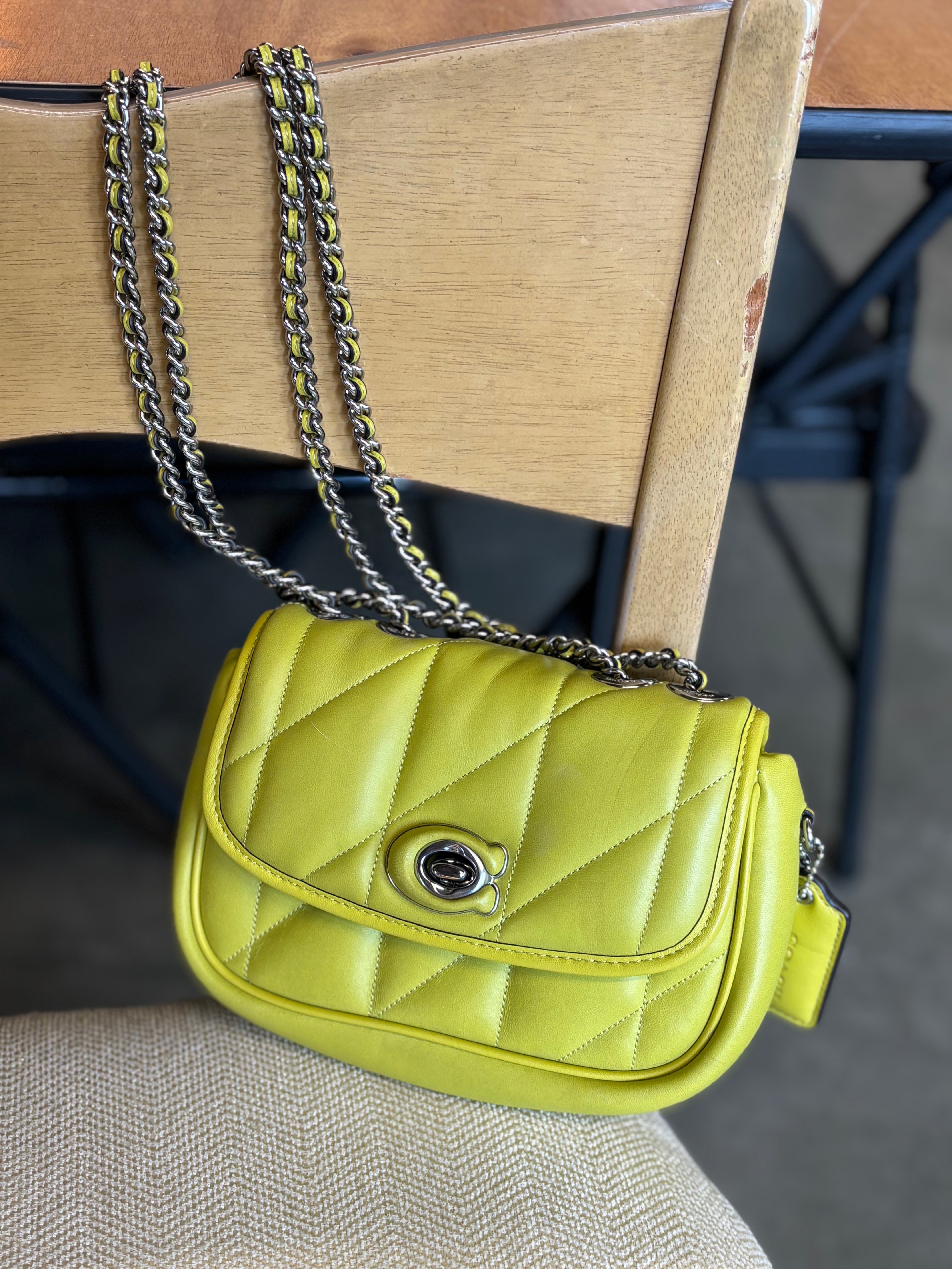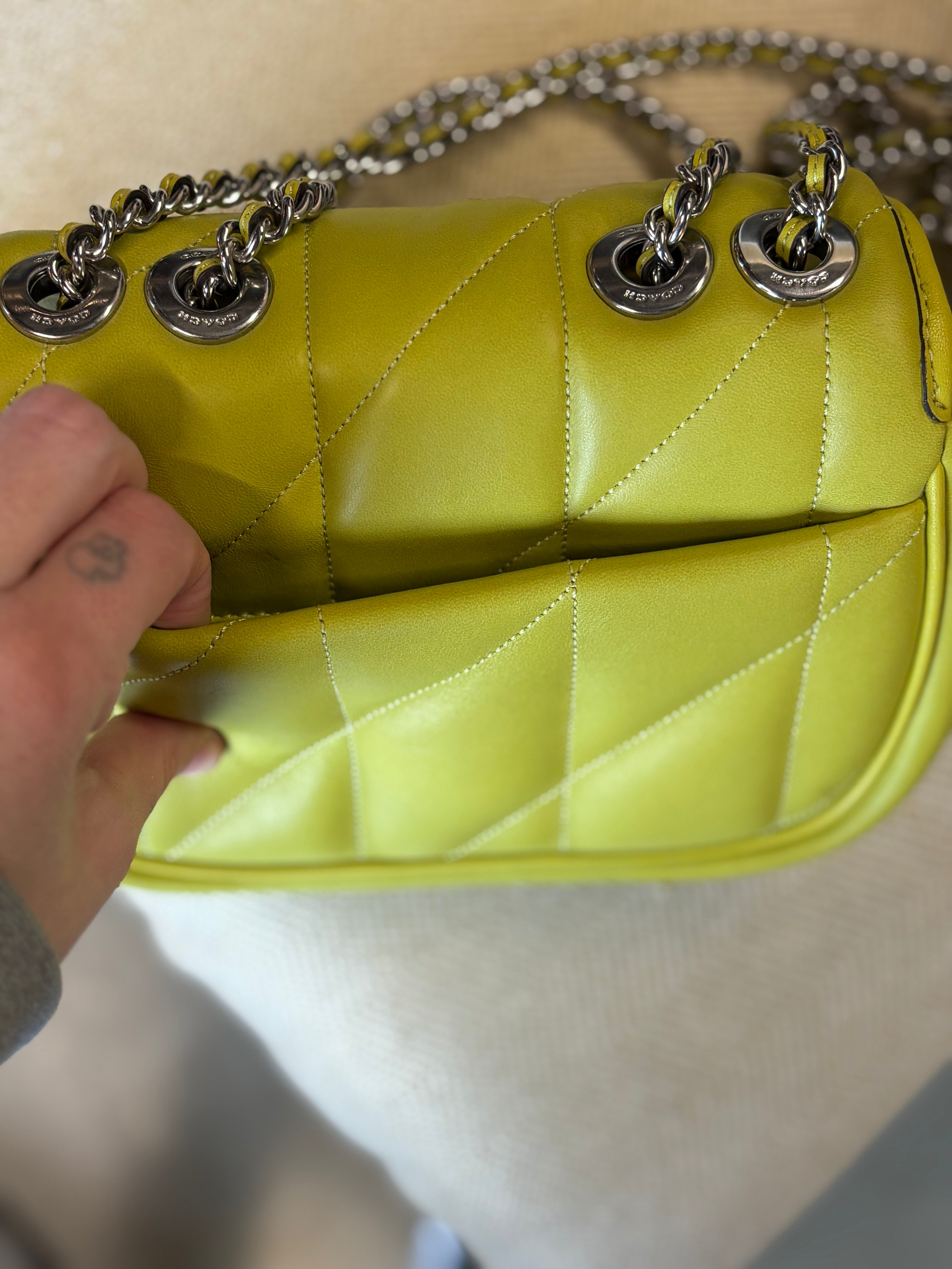 Coach Quilted Leather Shoulder Bag – Chartreuse Lime / Silver Chain – Authentic MC Code