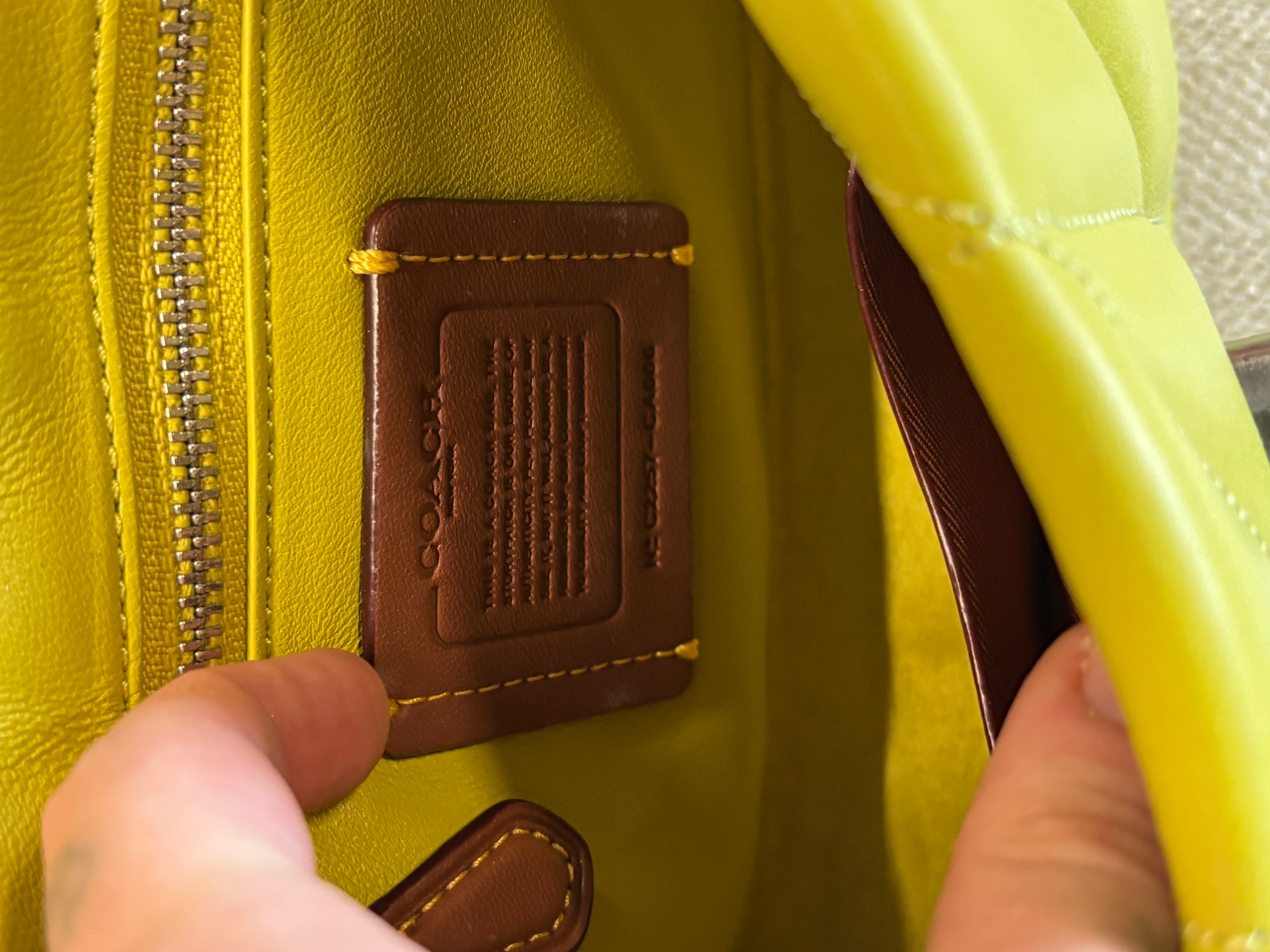 Add a bold pop of color to your wardrobe with this gorgeous Coach quilted leather shoulder bag in a rare chartreuse/lime green. Soft, buttery leather with diamond quilting, silver-tone hardware, and a double chain strap woven with matching leather. This one is truly a statement piece and perfect for anyone who loves unique Coach colors.