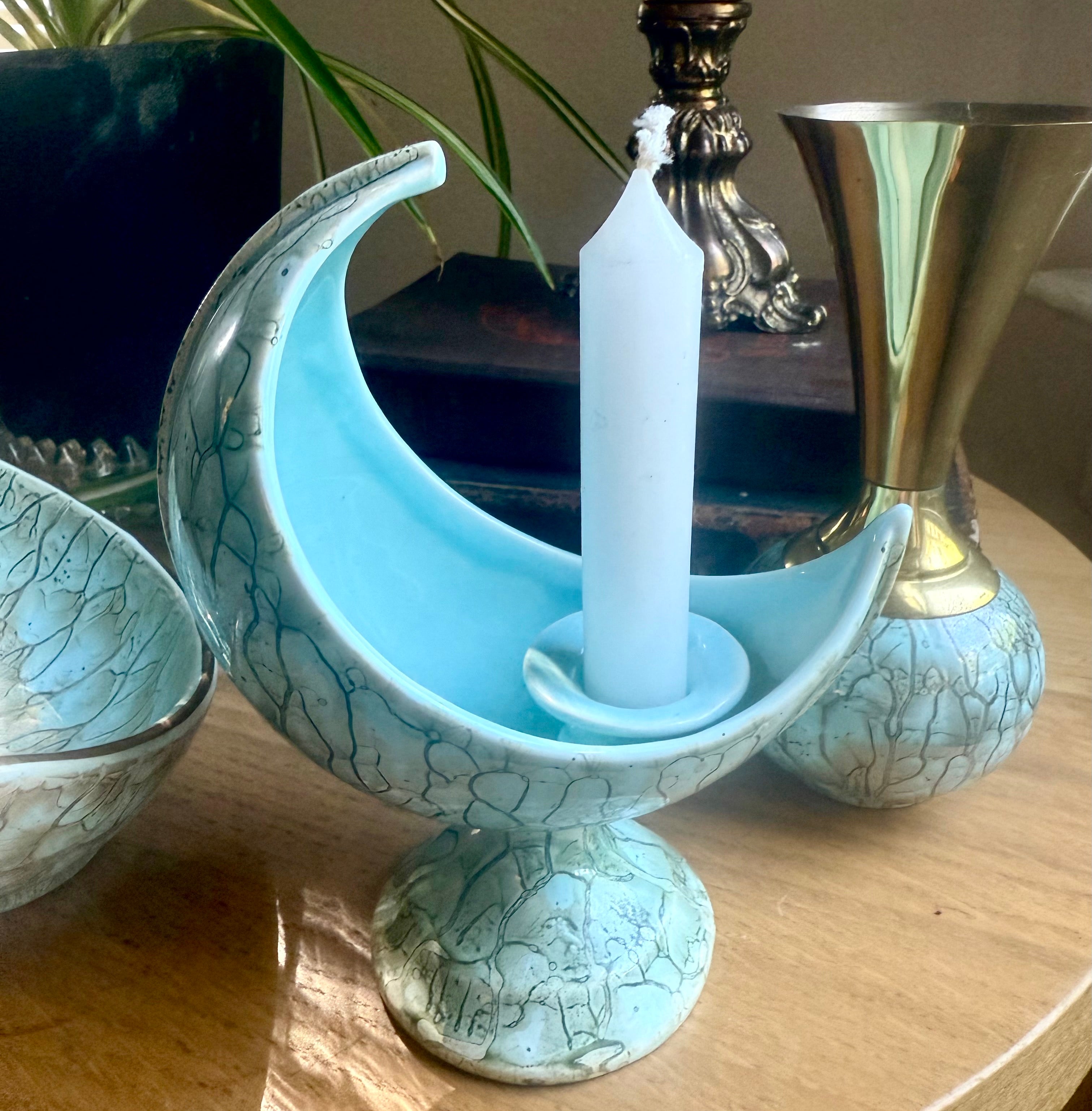 - 🌙 Crescent Moon Candleholder – perfect for taper candles or as a display piece