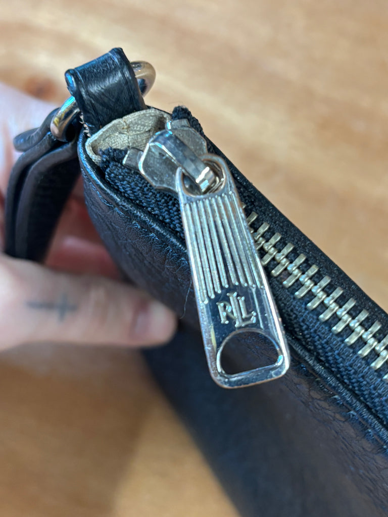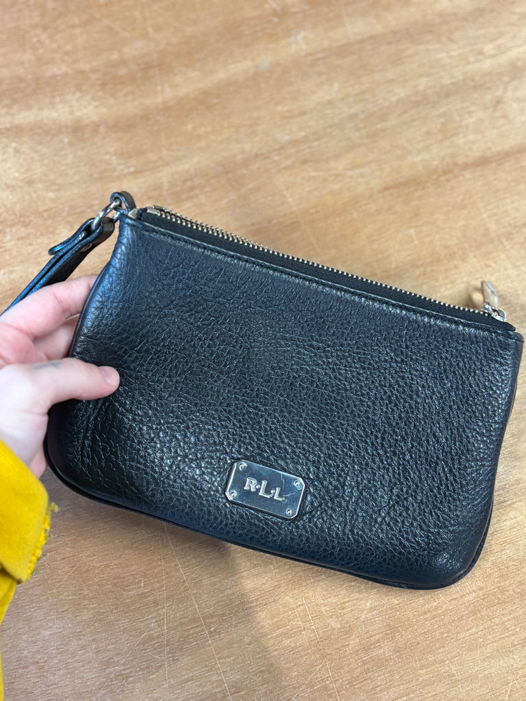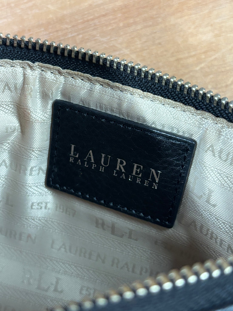 Classic and timeless, this Lauren Ralph Lauren (RLL) wristlet clutch is crafted from high-quality pebbled leather with a smooth zip-top closure and silver logo plate on the front. The interior is lined with the signature RLL logo fabric, featuring a sleek and minimalist design perfect for day-to-night versatility.