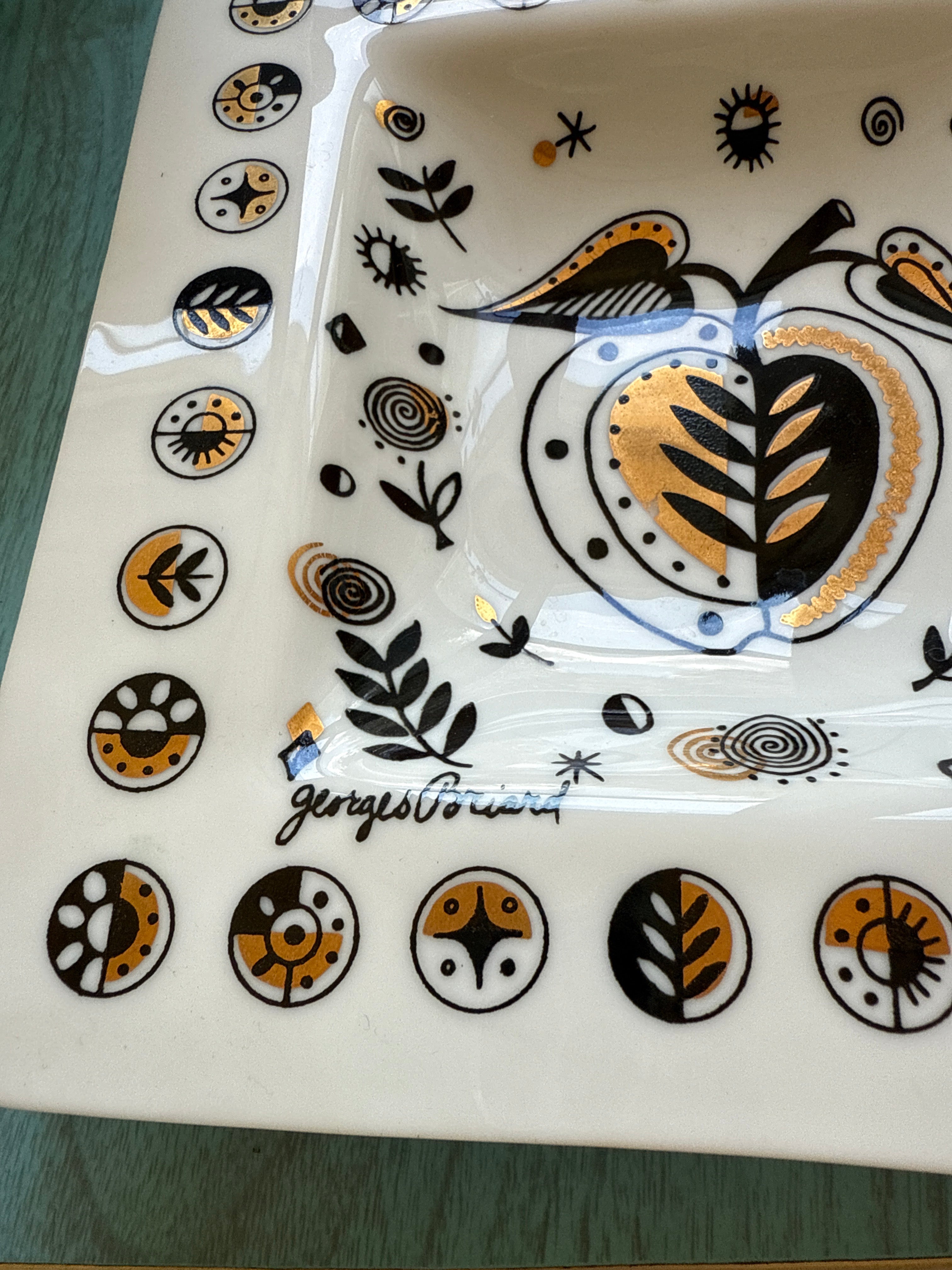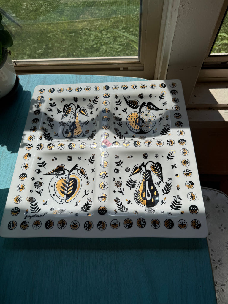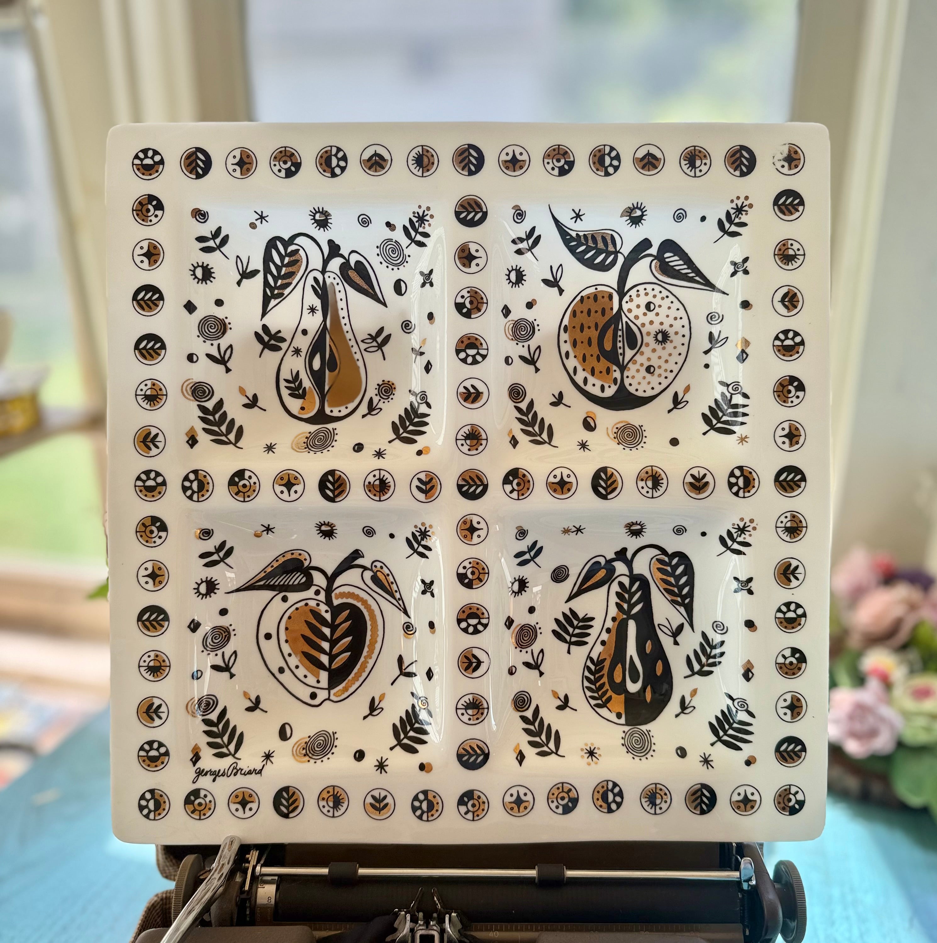 Georges Briard Mid-Century Modern Fruit Platter – Pear & Apple Design with 22k Gold – Vintage 1960s Serving Tray