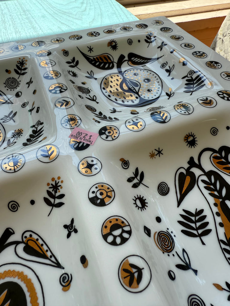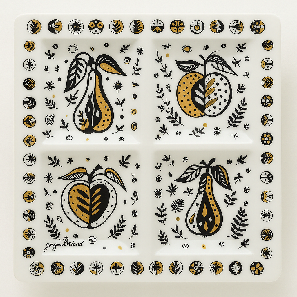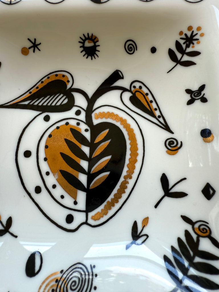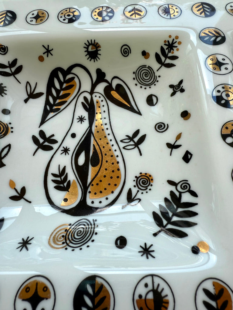 Georges Briard Mid-Century Modern Fruit Platter – Pear & Apple Design with 22k Gold – Vintage 1960s Serving Tray