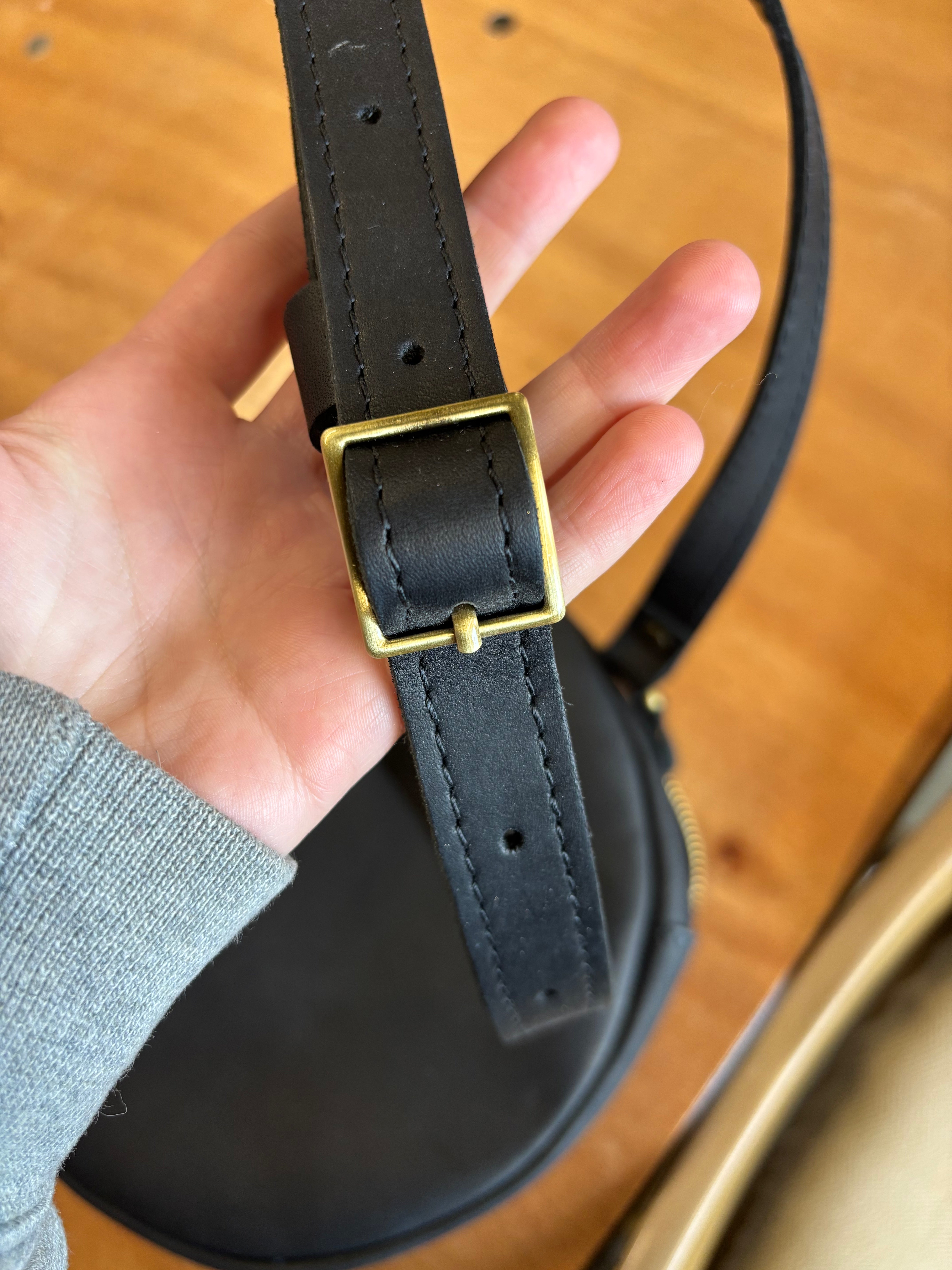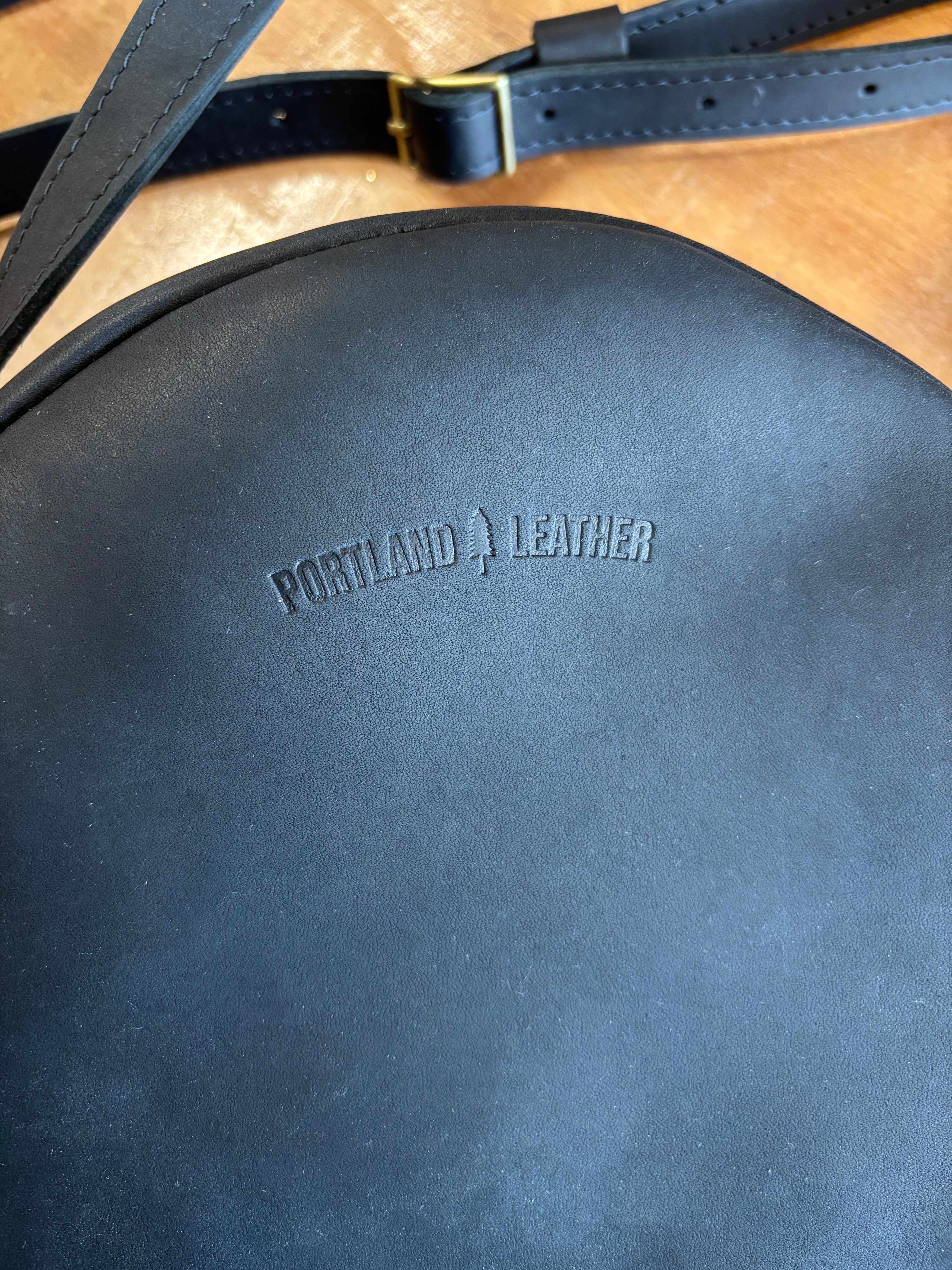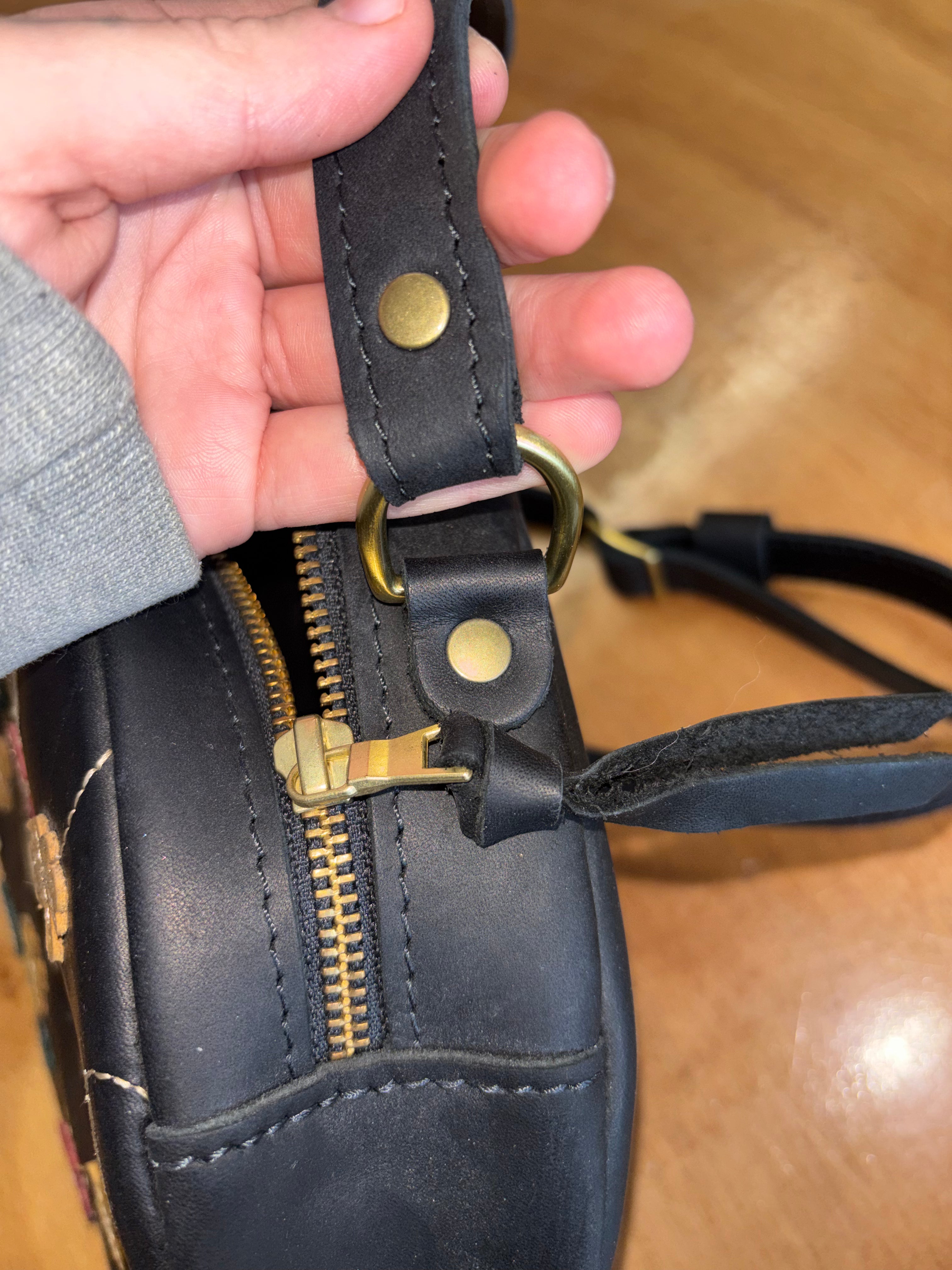 A gorgeous Portland Leather Goods round crossbody bag crafted from full-grain leather and decorated with beautiful embroidered + appliqué florals. PLG pieces last forever and develop a soft, rich patina — this one already has that perfect lived-in look while staying structurally excellent.