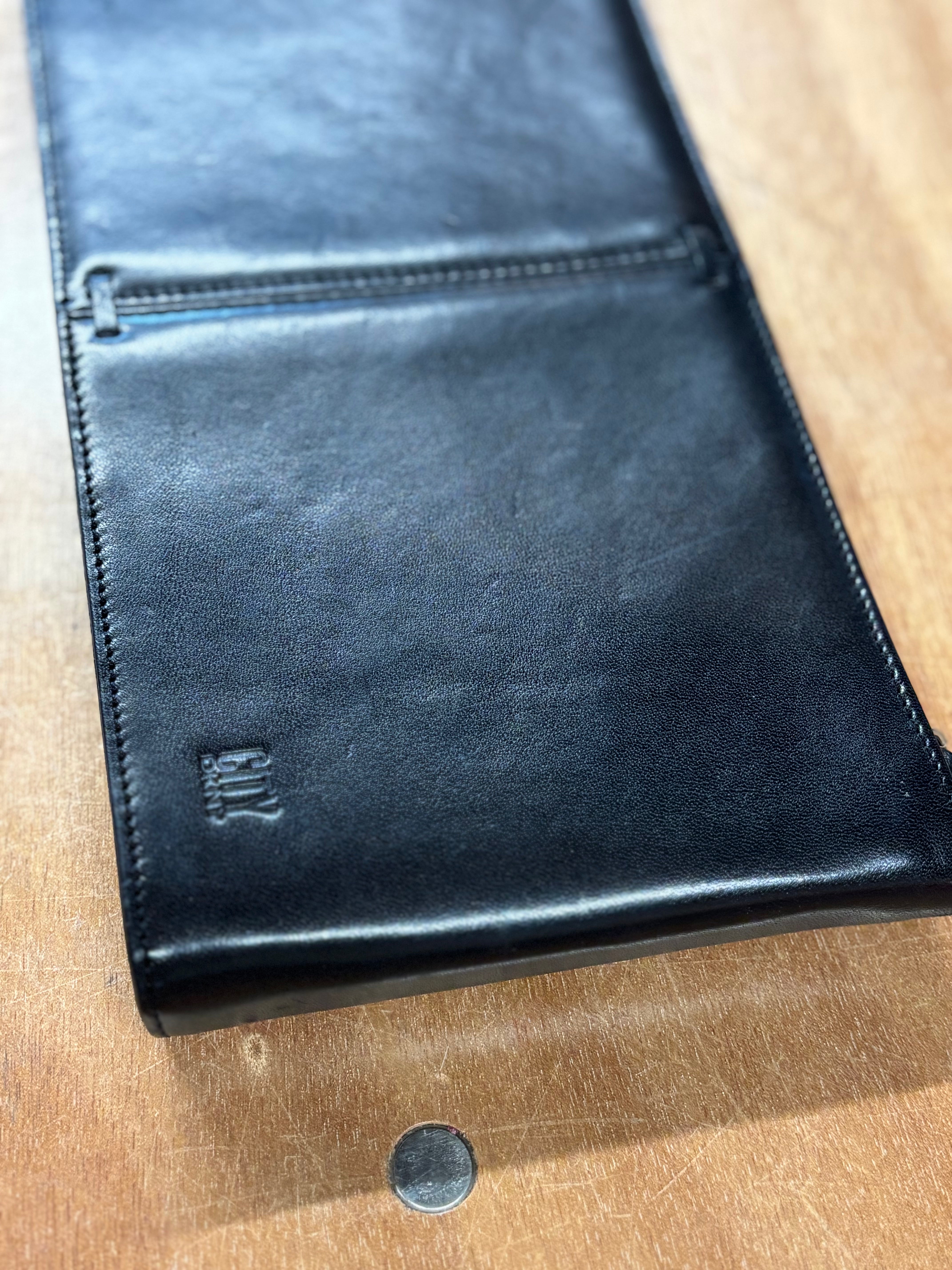 The fold-over flap design gives it a refined, structured silhouette that’s perfect for both everyday wear and elevated evenings out. Inside, the clean leather lining keeps things polished and professional. The City DKNY logo is subtly embossed on the back for a discreet designer touch.
