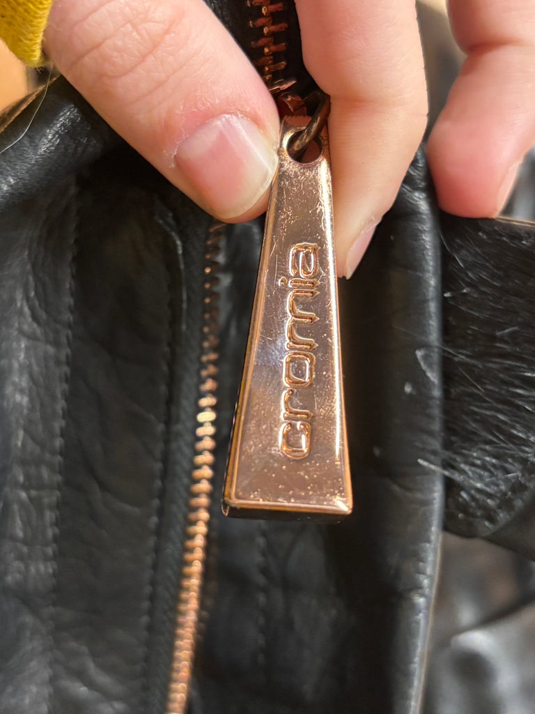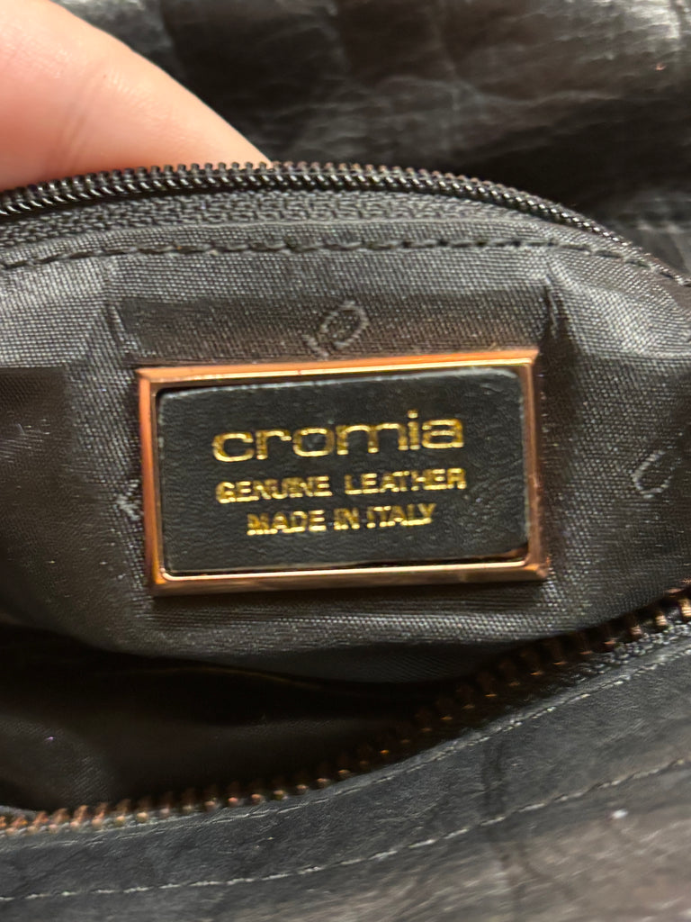 The bag features gold-tone hardware, a signature Cromia zipper pull, and an interior metal plate marked “Cromia – Genuine Leather – Made in Italy.”