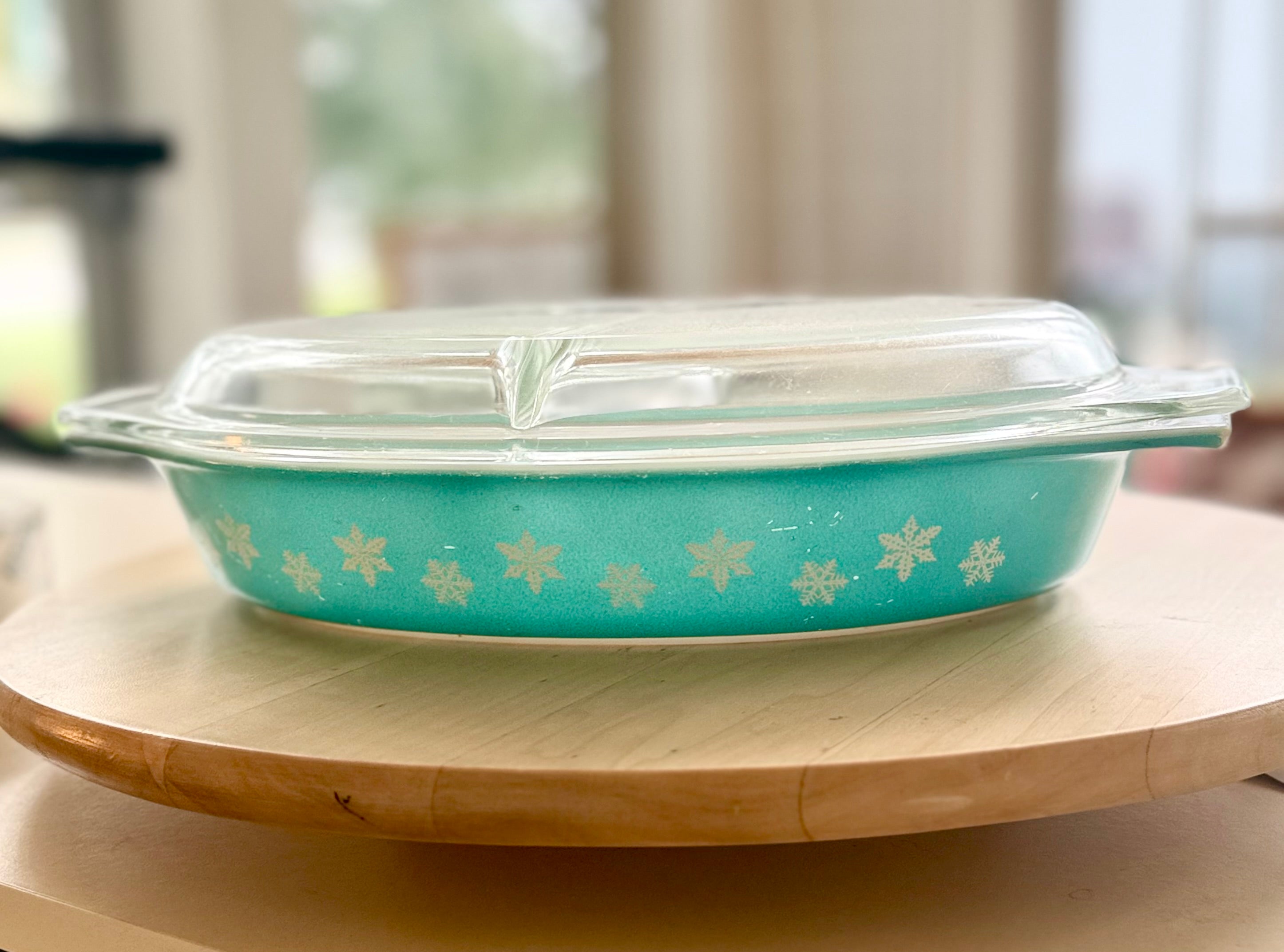 🩵 Vintage Pyrex Snowflake Blue Divided Casserole Dish with Lid — 1½ Quart #945C | 1960s Turquoise White Snowflake Pattern | Mid Century Modern Kitche is backordered and will ship as soon as it is back in stock.