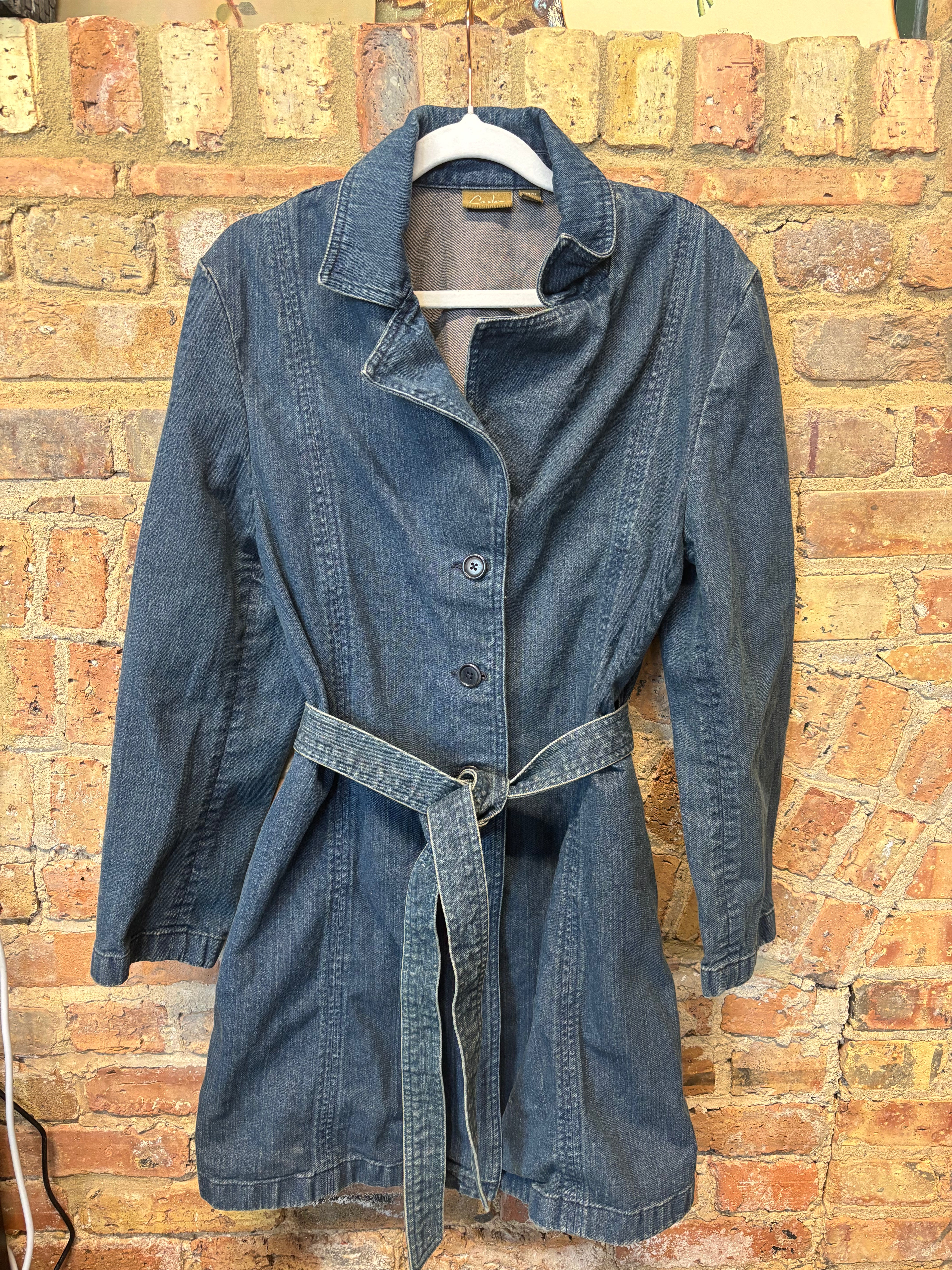A timeless wardrobe staple! This Caslon belted denim trench coat combines the casual comfort of denim with the structure of a tailored coat. Featuring a flattering button front, waist tie belt, and a mid-length cut, this piece can be styled as both a lightweight jacket or a chic dress coat